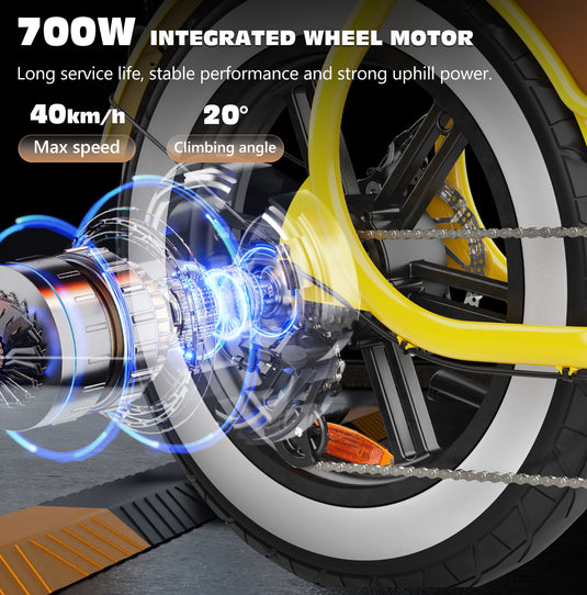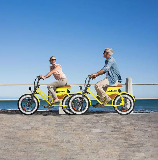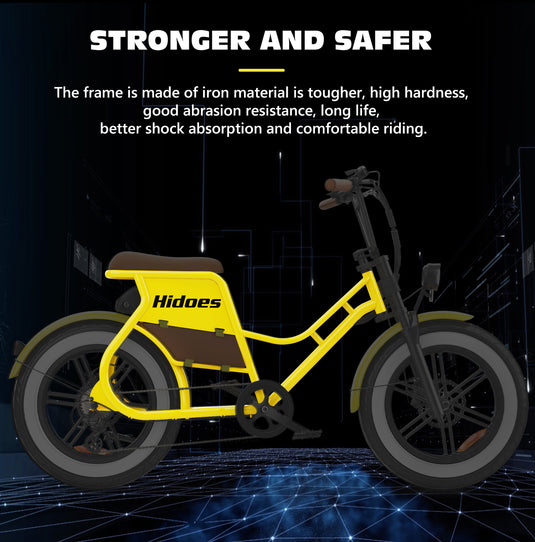 Das Hidoes C8 wurde speziell für Frauen entwickelt und bietet mit seinem übergroßen Sofasitz maximalen Komfort auf langen Fahrten. Obwohl die Sitzhöhe nicht verstellbar ist, sorgt das Design für eine bequeme und entspannte Sitzposition. Die gelbe Farbe verleiht dem E-Bike einen Hauch von Stil und Persönlichkeit und macht es zu einer hervorragenden Wahl für Frauen, die Wert auf Funktionalität und Stil legen.
